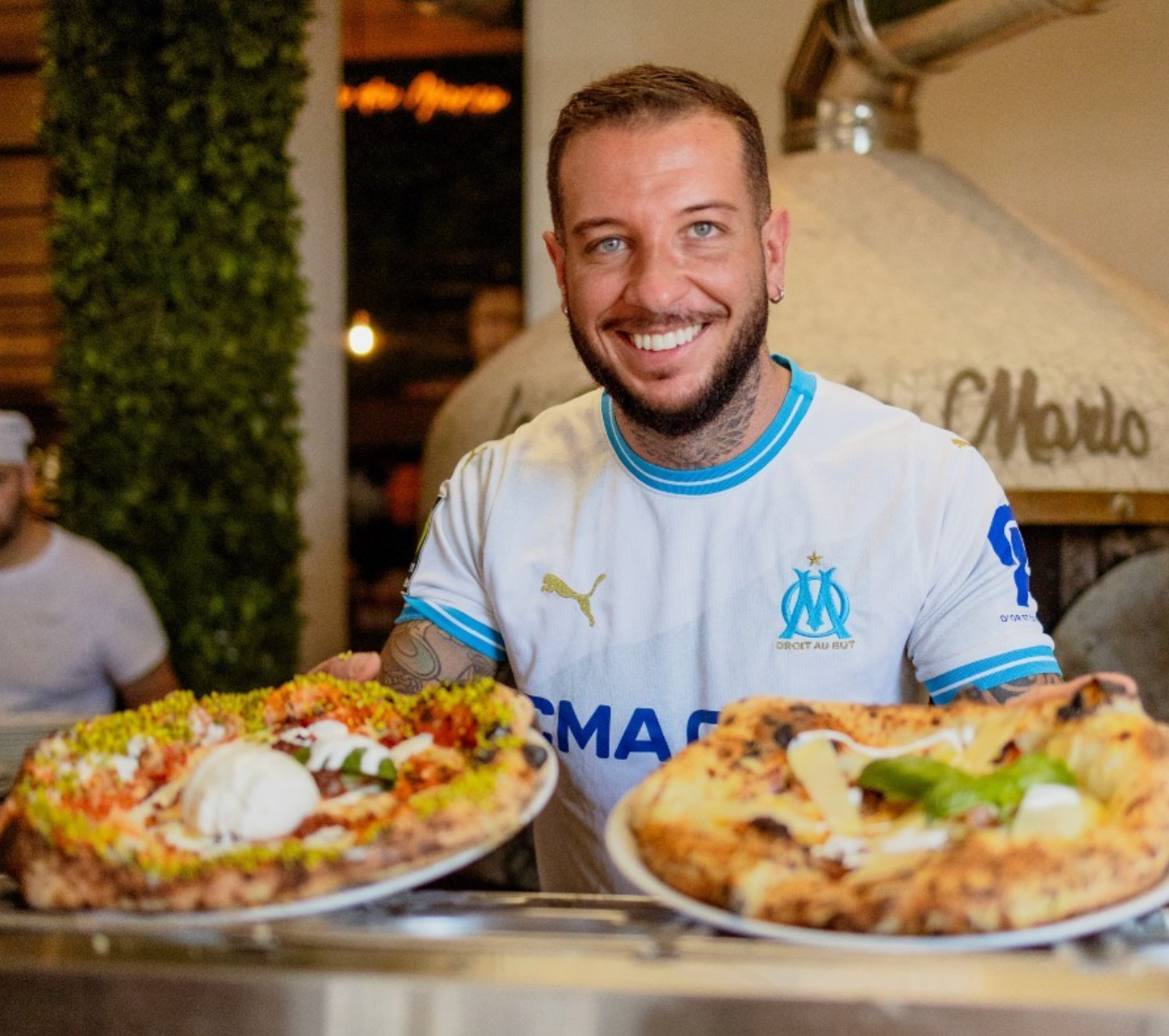 Identité moderne, couleurs OM (ciel et blanc) + rappels du drapeau italien. Lecture directe, nav classique, vibe street food premium.